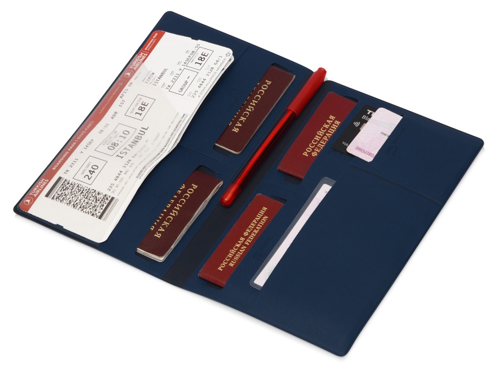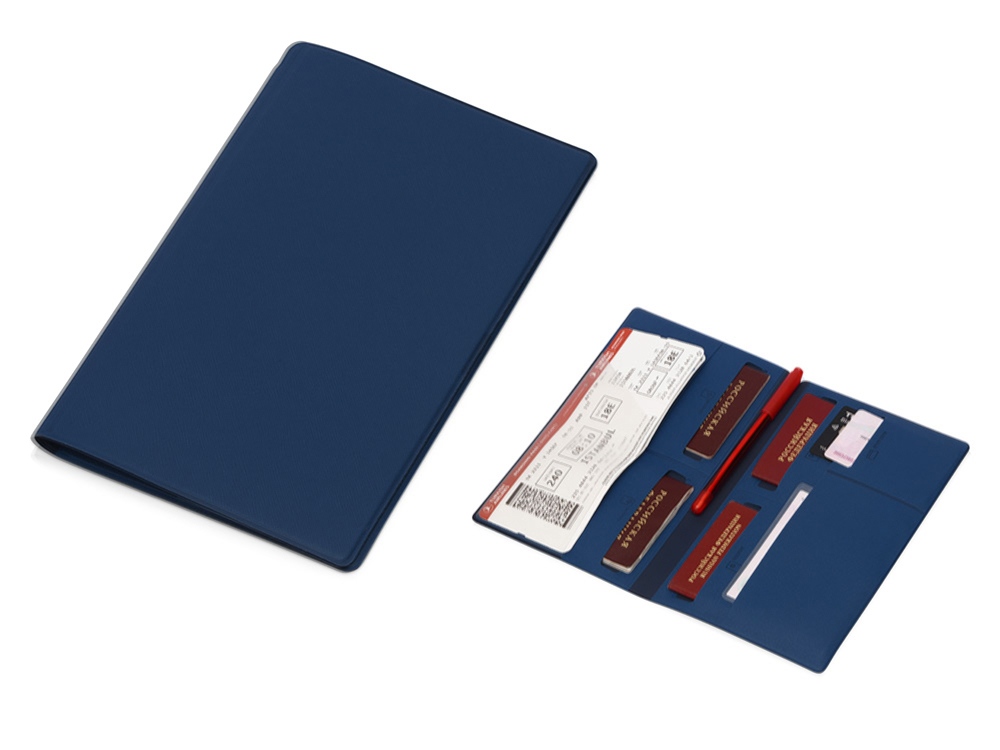Вместительный и стильный органайзер для документов незаменим в путешествии. Выполнен из качественного материала. Экокожа приятна на ощупь и имеет различные расцветки. Внутри имеется восемь карманов, которые позволяют вместить документы для семьи из четырех человек. Документы аккуратно разложены и не утратят свою форму. Благодаря своим преимуществам органайзер для путешествий становится не только отменным подарком, но и эффективным рекламным средством. Тиснение (Блинт) на данный товар осуществляется бесплатно. Оплачивается только настройка оборудования в размере 8700 рублей на весь тираж.