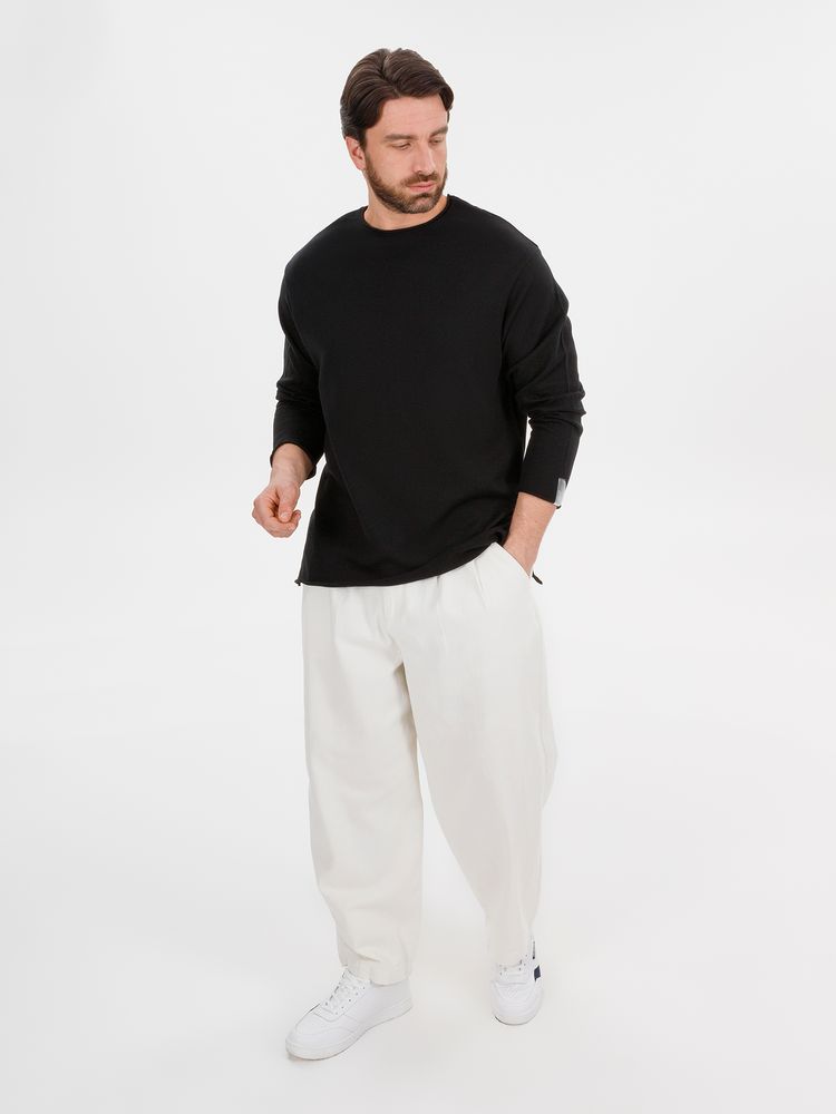 Лонгслив Fuori средней плотности с широким воротом, спущенной линией плеча и свободно подворачивающимися краями по низу, на рукавах и вороте, которые добавляют модели еще большей расслабленности. Прозрачная бирка с логотипом бренда на рукаве не нарушает минималистичности образа.