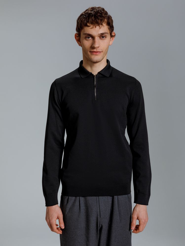 Мужская рубашка поло с длинным рукавом прямого силуэта.