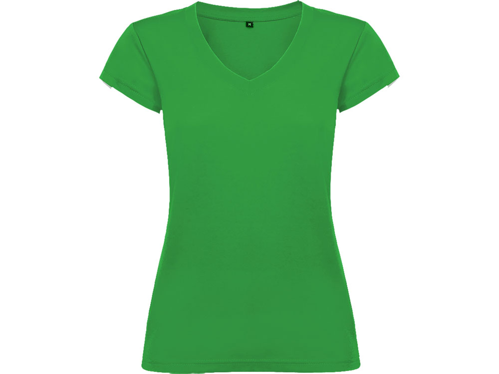 Женская футболка с коротким рукавом и V-образной горловине, обработано рибом 1х1. Полуприлегающий силуэт модели с боковыми швами.