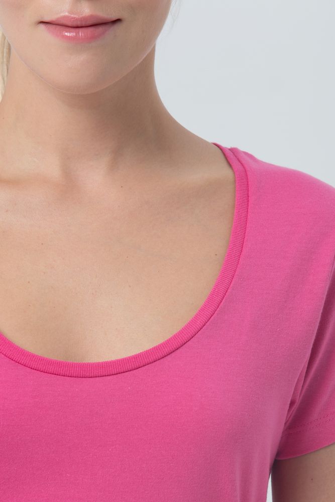 Женственная футболка с глубоким круглым вырезом.