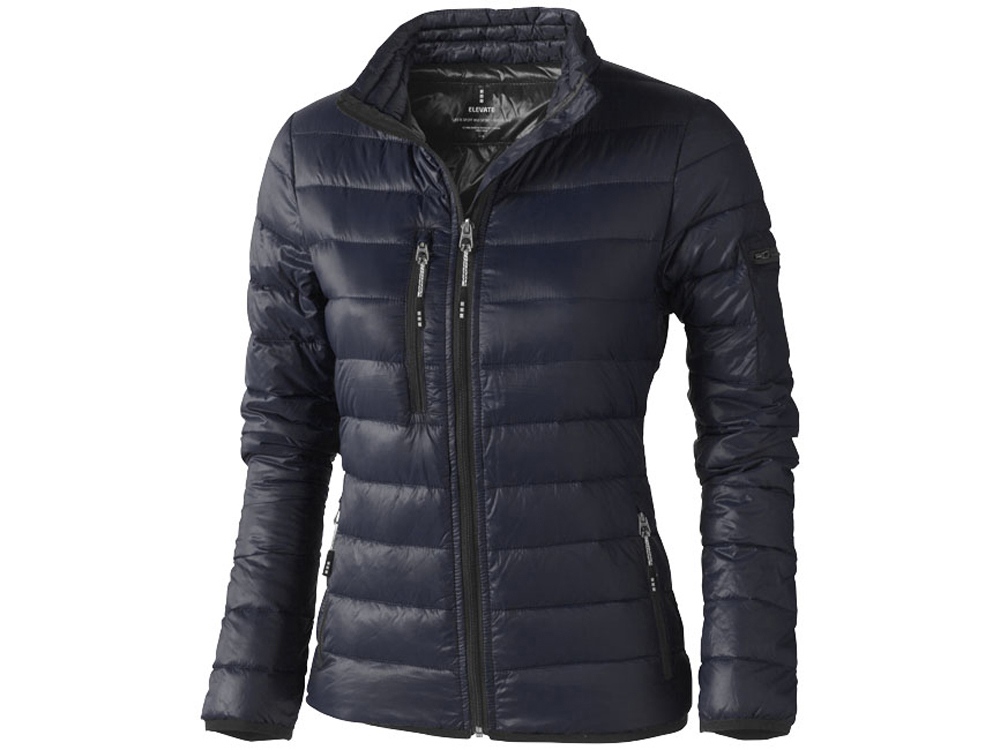 Женская легкая куртка Scotia. Стандартный покрой. Ткань не пропускает пух. Карманы для рук и нагрудный на молнии. Карман на рукаве на молнии можно использовать для нанесения. Резинка на манжетах и внизу куртки. Ремешки на собачку (второй комплект в цвете антрацит). Внутренний противоветровой клапан и защита подбородка. Ткань дышащая, ветронепроницаемая и влагоотталкивающая. Отражающий лого сзади. Легкий пуховик. Ткань из 100% нейлона с матовым и блестящим водоотталкивающим покрытием, 20D. 80% пух и 20% перо. 115 г/м².