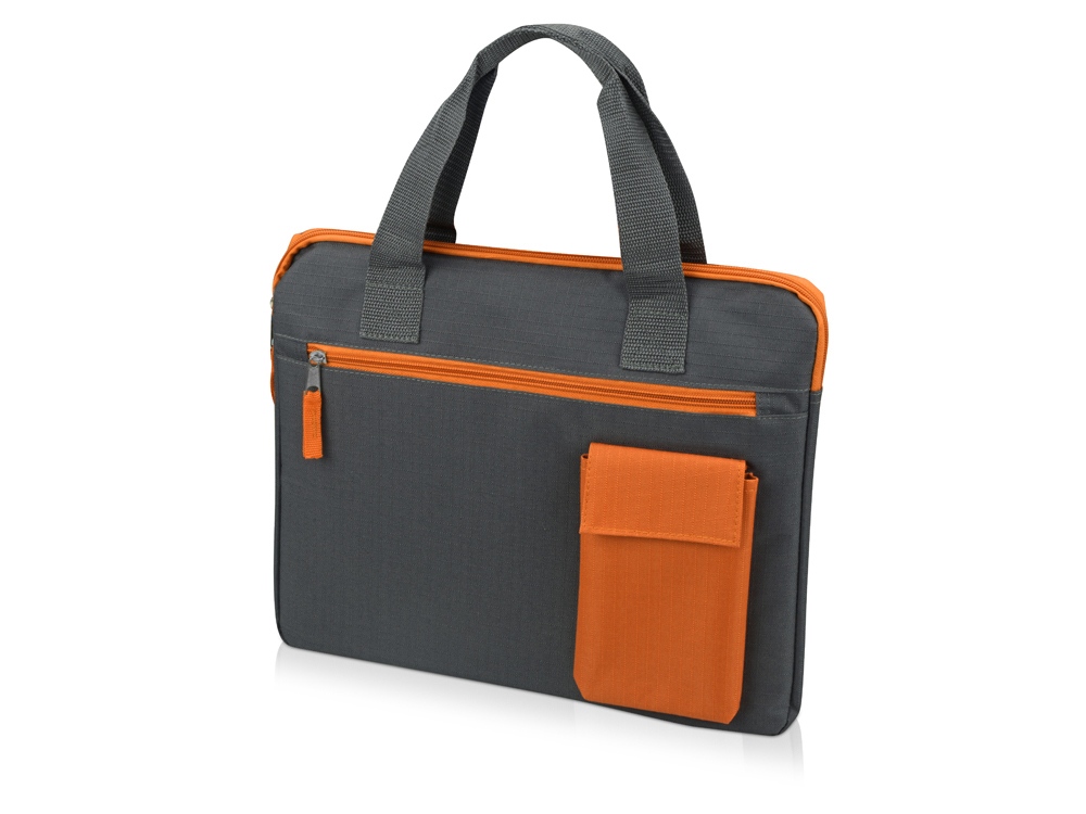 Конференц-сумка Session с тремя отделениями - основное отделение для документов, отделение на молнии и контрастный карман для ручек и гаджетов Термотрансфер (1 цвет (цветные изделия)) на данный товар осуществляется бесплатно. Оплачивается только настройка оборудования в размере 10000 рублей на весь тираж.