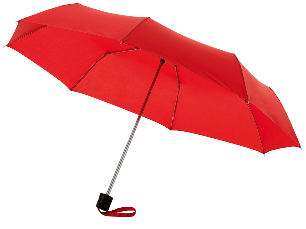 Зонт Ida трехсекционный 21,5. Зонт 21,5 с металлическим стержнем и спицами и пластиковой ручкой. В комплекте чехол. Полиэстер. Трафаретная печать (1 цвет (цветные изделия)) на данный товар осуществляется бесплатно. Оплачивается только настройка оборудования в размере 12700 рублей на весь тираж.